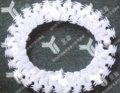 下面我們再談?wù)動(dòng)善趯?dǎo)致的柔性鏈失效。目前,我國的大多數(shù)工廠都是工人休息,機(jī)器不休息,因此,柔性鏈常常會(huì)過度使用,出現(xiàn)疲勞失效而發(fā)生故障,也就是說柔性鏈在運(yùn)行過程中承受了過度的負(fù)荷,導(dǎo)致受力不均勻,很容易出現(xiàn)斷裂或者被擠壓的情況。對(duì)于這種情況我廠只有通過強(qiáng)化零部件的方式來解決。